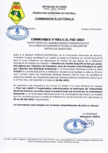 La Commission électorale de la fédération guinéenne de football vient de rouvrir l’appel à candidatures pour le poste de président, après le retrait de la candidature d’Antonio Souaré et l’invalidation de celle d’Aboubacar Touré “ Bouba Tri ”, qui étaient les candidats déclarés au poste de Président de la FEGUIFOOT.