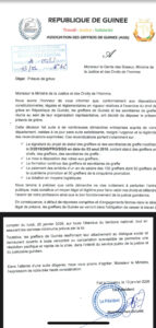 À travers une copie d’un préavis de grève adressé au ministre de la Justice, garde des Sceaux et des Droits de l’Homme, l’Association des greffiers de Guinée annonce sa volonté d’aller en grève.